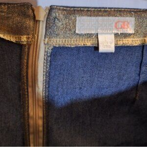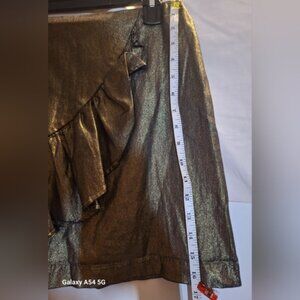 Elegant mini skirt with a shimmering gold finish. Features stylish ruffle detail. Ideal for evening wear. size juniors large. never worn. 16.5 inch length