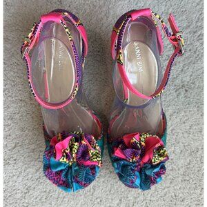 Gianni Bini Shoes Womens Sz 10 Colorful Pink / Blue Strap Wedge Sandals Open Toe