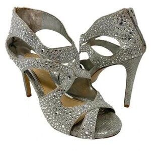 Gianni Bini Silver Sparkle Flame Open-Toe Strappy Heels - Size 7.5