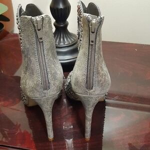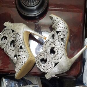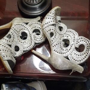 Chic open-toe heels with intricate studded design. Perfect for adding glamour.
