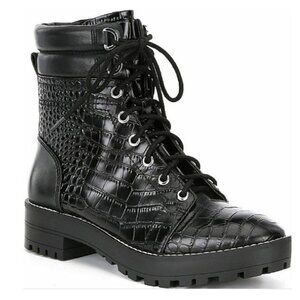 Gianni Bini Size 6.5 Black Chunky Combat Heel Boot Lace Up Textured Low Heel
