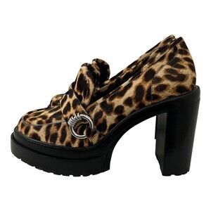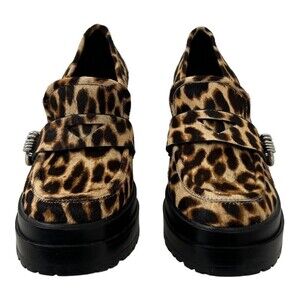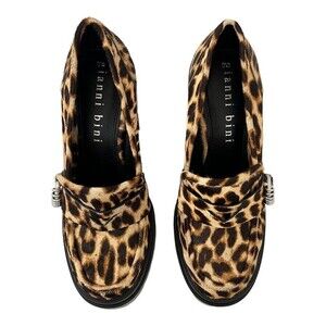Gianni Bini Size 8.5 Maxxwelle Leopard Print Faux Calf Hair Platform Loafers