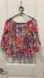 Vibrant floral off-shoulder blouse with a mix of pink, blue, and red hues. Perfect for a stylish and comfortable look. Omg! This top is beautiful!!! Loving all the tropical colors!! Ptp is 20 and length is 19 inches long. Cute ruffles on sleeves and bottom of blouse!