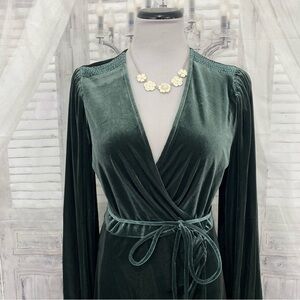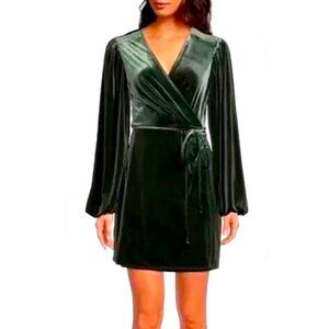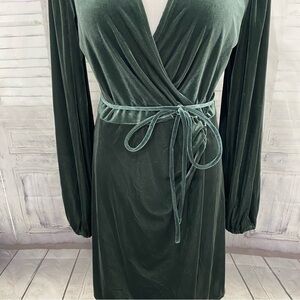 Gianni Bini Size Medium Hunt Green Leighton Velvet Full Wrap Dress Long Sleeve