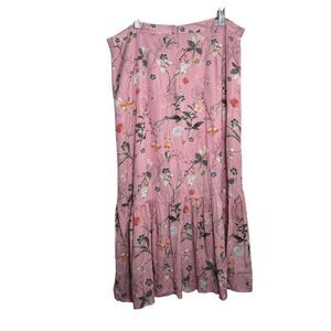 Gianni Bini Skirt Women's 12 Pink Floral Midi Button Front Casual Boho