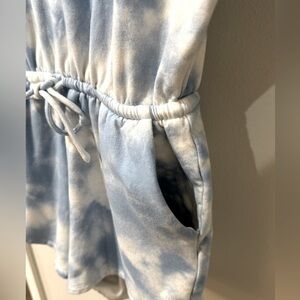 Step into style with this delightful Gianni Bini romper, featuring a charming blue and white tie-dye pattern. Perfect for casual outings or a day at the beach, this romper combines comfort with a trendy look!