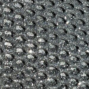 Crushed metallic look with sliver mesh overlay. As with any worn/ used item, unnoticed flaws may be present.