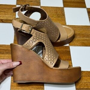 Gianni Bini Soo-Good DK Siera Tan Leather Wedges Size 7.5 Women