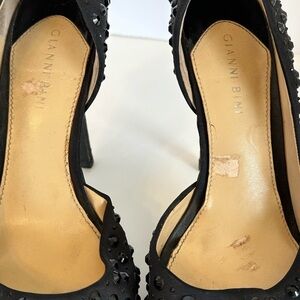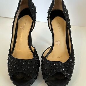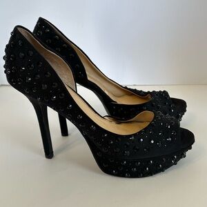 Gianni Bini Sparkling Black Satin Gemstone Embellished 5” Stiletto Heels Sz 10