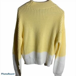 Gianni Bini Striped Yellow and White Slouchy Sweater Cable Knit