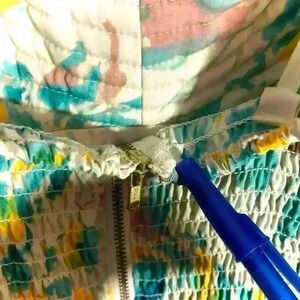 Gianni Bini Multicolor Print Zip Spring Summer Tropical Vacation Polyester Spandex Strapless Pleated Dress
