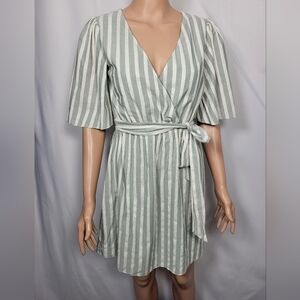 Gianni Bini striped sage green and white wrapped style dress in a size small.