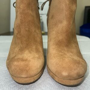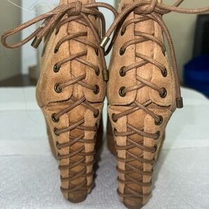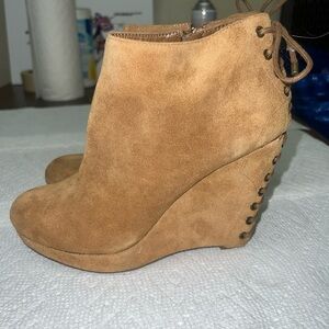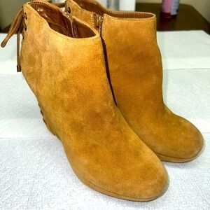 Gianni Bini Suede Wedge Heel Tie Bootie Shoes Tan 8M Leather Zipper