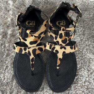 Gianni Bini Sz 8 Cheetah Animal Print Real Fur Calf Hair Sandals