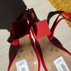 Gianni Bini Tallia Red Suede Asymmetrical Strap Jewel Embellished Pumps Size 7