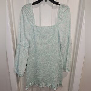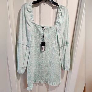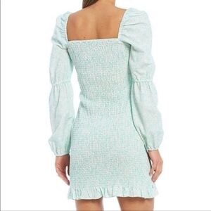 NWT Gianni Bini Tally Long Sleeve Floral Square Neck Smocked Mini Dress Size M