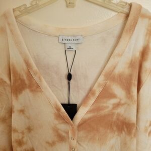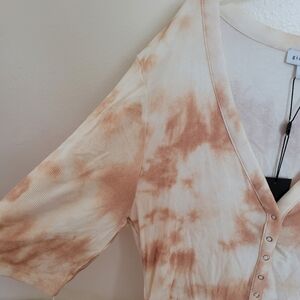 Gianni Bini Tan Cream Tie Dye Tee Shirt Bodysuit Size Extra Large