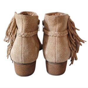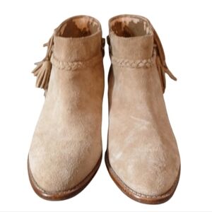 Gianni Bini Tan Suede Feathered Ankle Boot Women's Western Bootie size 7.5