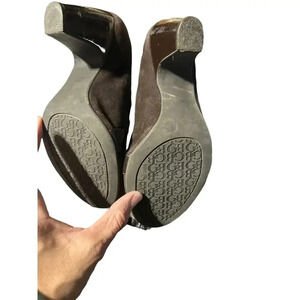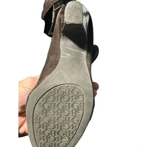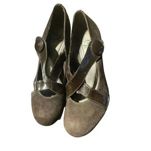 Gianni Bini Taupe Suede Black Patent Leather Trim Mary Jane Pumps Size 8M
