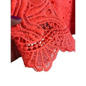 Gianni Bini Top S Orange Floral Lace Neon Coquette Feminine Coastal Preppy 80s