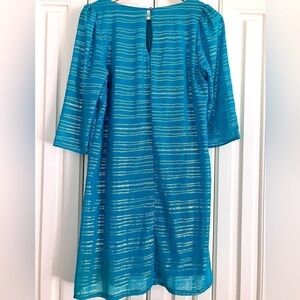 Gianni Bini Turquoise 3/4 Sleeved MIDI Dress With Sparkly Stripes Size M