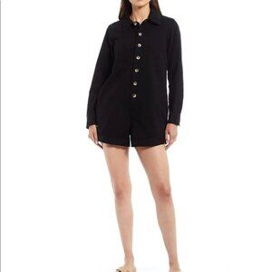 Gianni Bini Vera Long Sleeve Button Down Collar Denim Romper in Cream Sz. XS