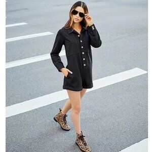 Gianni Bini Vera Long Sleeve Button Down Collar Denim Romper