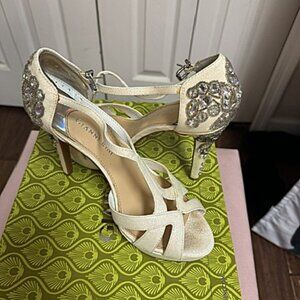 Gianni Bini designer model Geneva, color white US Size 7.5. Worn only once for my wedding. See photos for minor wear on soles and insoles.