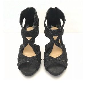 Gianni Bini Women Black Rhinestone Crystal Embellished Strappy 4" High Heel 7 M