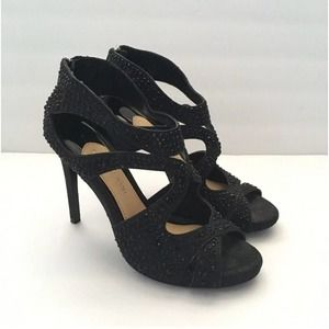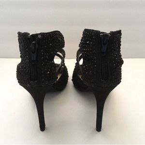Gianni Bini Women Black Rhinestone Crystal Embellished 4" High Heel Sandals