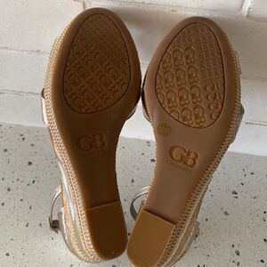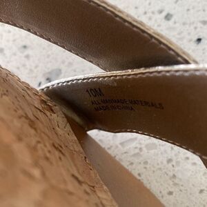 Gianni Bini Women Cork Wedge Metallic Gold Ankle Strap Platform Sandals Size 10