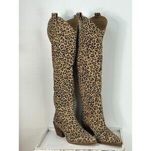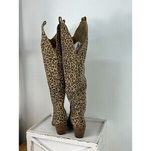 Gianni Bini Women Size 5.5 Leather Boot Cheetah Leopard Over The Knee Western Rk