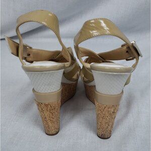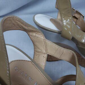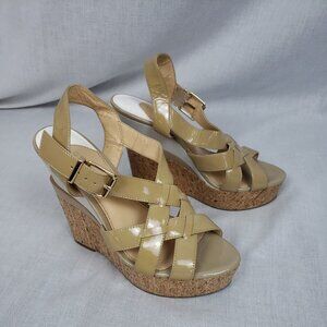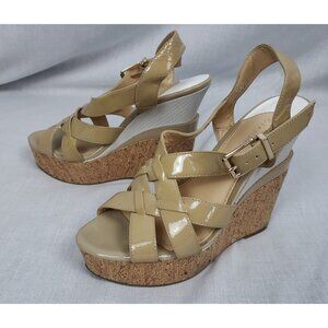 Gianni Bini Women's 8 M Platform Wedge Strappy Sandals Nude/Tan Leather Classy