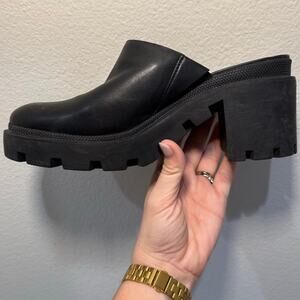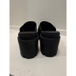 Gianni Bini Women’s Black Leather Platform Chunky Lug Sole Clog Mules 9.5