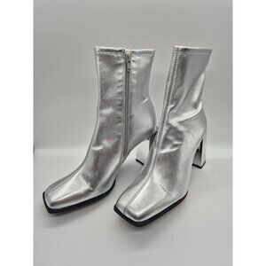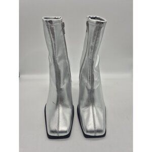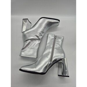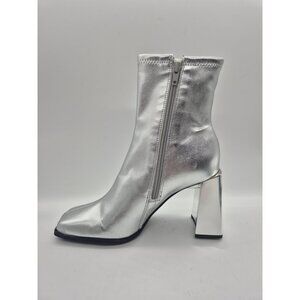 Gianni Bini Women's Boots Size 7.5 Silver Mirror Block Heel Square Toe (507)
