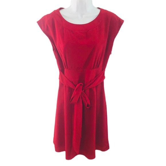 Gianni Bini Women’s Red Dress Sz 4 Fit And Flare With Tie Lined Cap Sleeves EUC