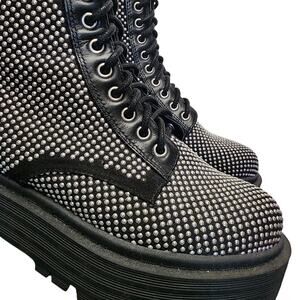 Very good, used condition, size 8M. Black leather chunky combat boots with silver, non-stop studs. Please see pics for details. One stud is missing. Gently worn. Smoke-free, ask any questions. Shop my closet for more great items: BUNDLE, BUNDLE, BUNDLE for discounts!!!