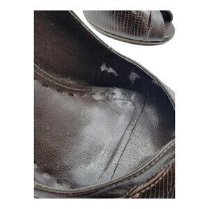 Gianni Bini Women's Size 7.5M Brown Leather Peep Toe Pump Stiletto Heels Shoes. Have some material damaged shown in pictures
