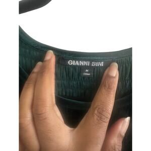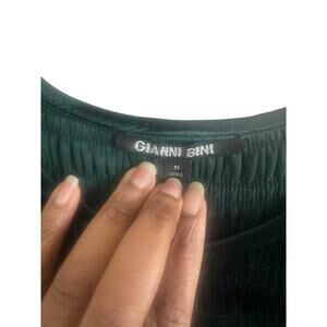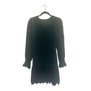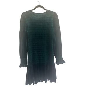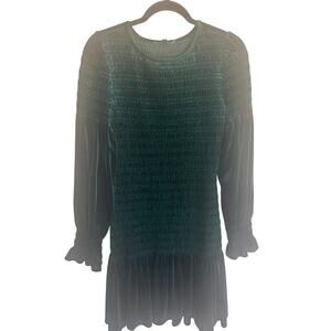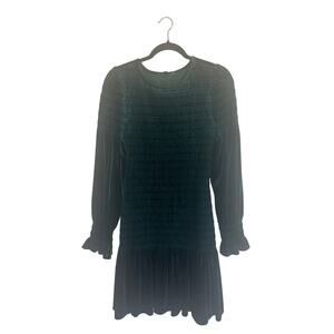 Gianni Bini Women's Smocked Velvet Mini Dress M Long Sleeve Ruffle Hem Green