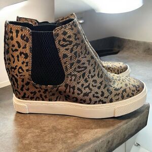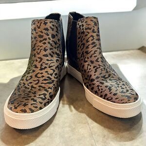 Gianni Bini Womens Sneaker Ankle Booties Size 6.5 M Leopard Cheetah Gold Shimmer