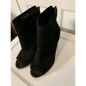 Gianni Bini Womens 7.5 M Black Open Toe Suede Leather Ankle Boots. Condition is Pre-owned. Shipped with USPS Mail.