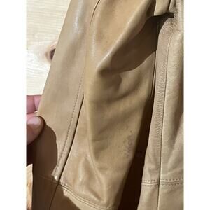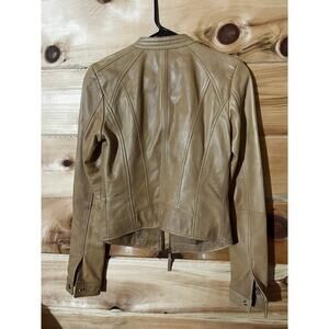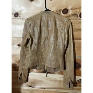 Gianni Bini Women's Tan Leather Moto Jacket zipper pockets. Size Small