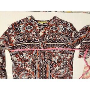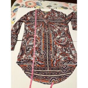 Gianni Bini Women’s Tunic Top Blouse Paisley Size M Long Sleeve V Neck