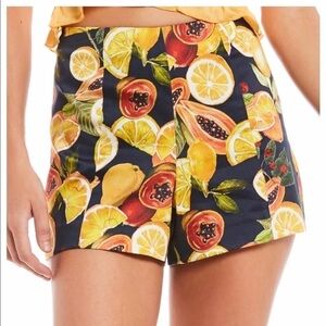 Gianni Bini XL Botanical High Waisted Shorts Pleated lemon pomegranate
