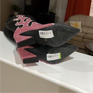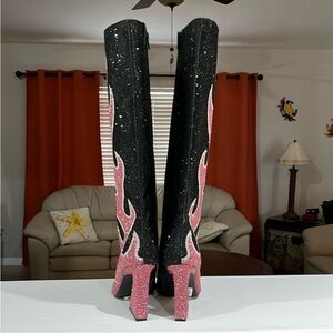 Gianni Bini Zander Rhinestone Flame Pointed Toe Knee High Boots Size 6.5 NWOB