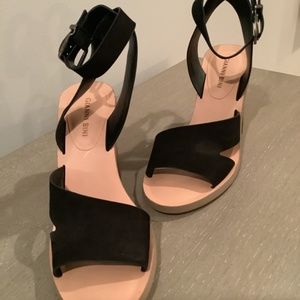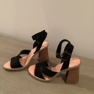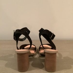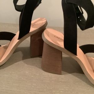 Gianni Bini black ankle strap sandal with 3.75 inch heel. Uniquely shaped wide heel. Classy and never worn!