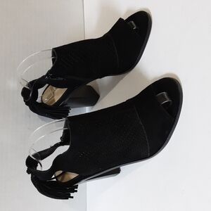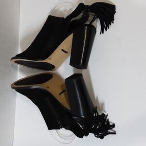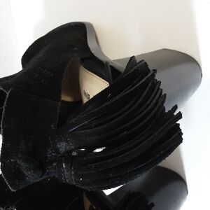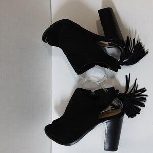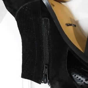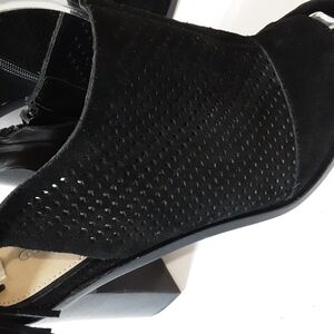 Gianni Bini black Hadwin leather suede perforated peep toe 9.5M Casual Y2k