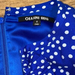 Gianni Bini blue & white polka dot ruffle dress size 4