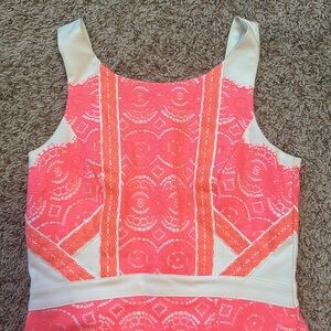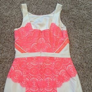 Worn once and been to dry cleaners. White and fuchsia pink.