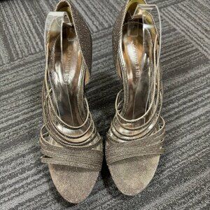 Gianni Bini gold metallic strappy stiletto open toe heels. All manmade materials. Size 10